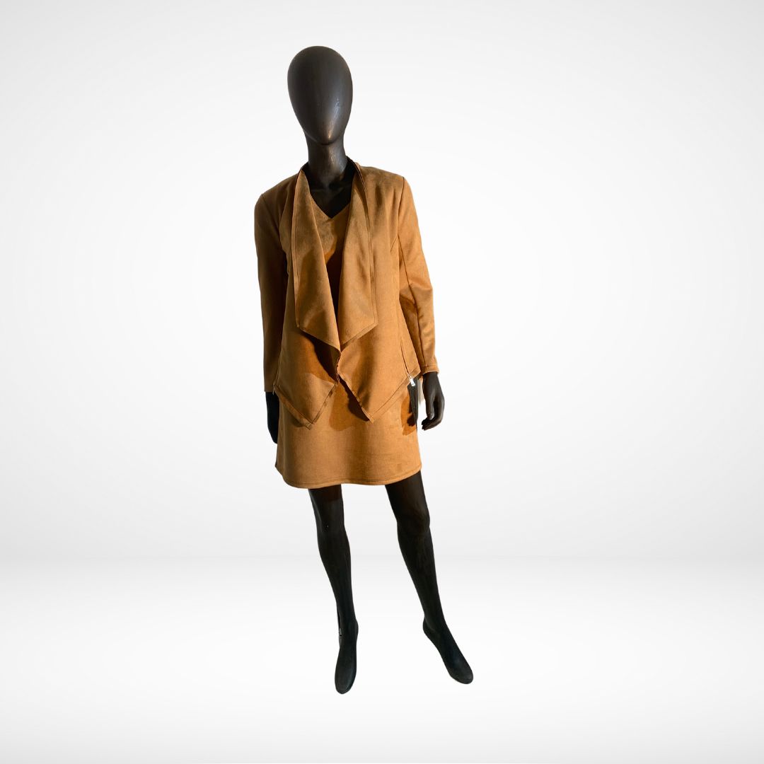 Robe col V en imitation daim camel, avec une fausse fermeture éclair au dos pour une touche originale. À associer avec la veste Chloé pour une élégance en toute occasion.